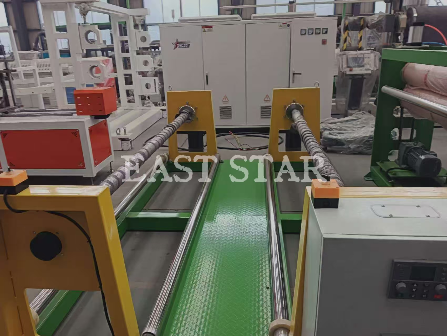 · Naprava za navijanje in previjanje: Zagotavlja stabilen oprijem in samodejno zvija ohlajeno in oblikovano ponjavo v urejen zvitek za enostaven transport in nadaljnjo obdelavo.