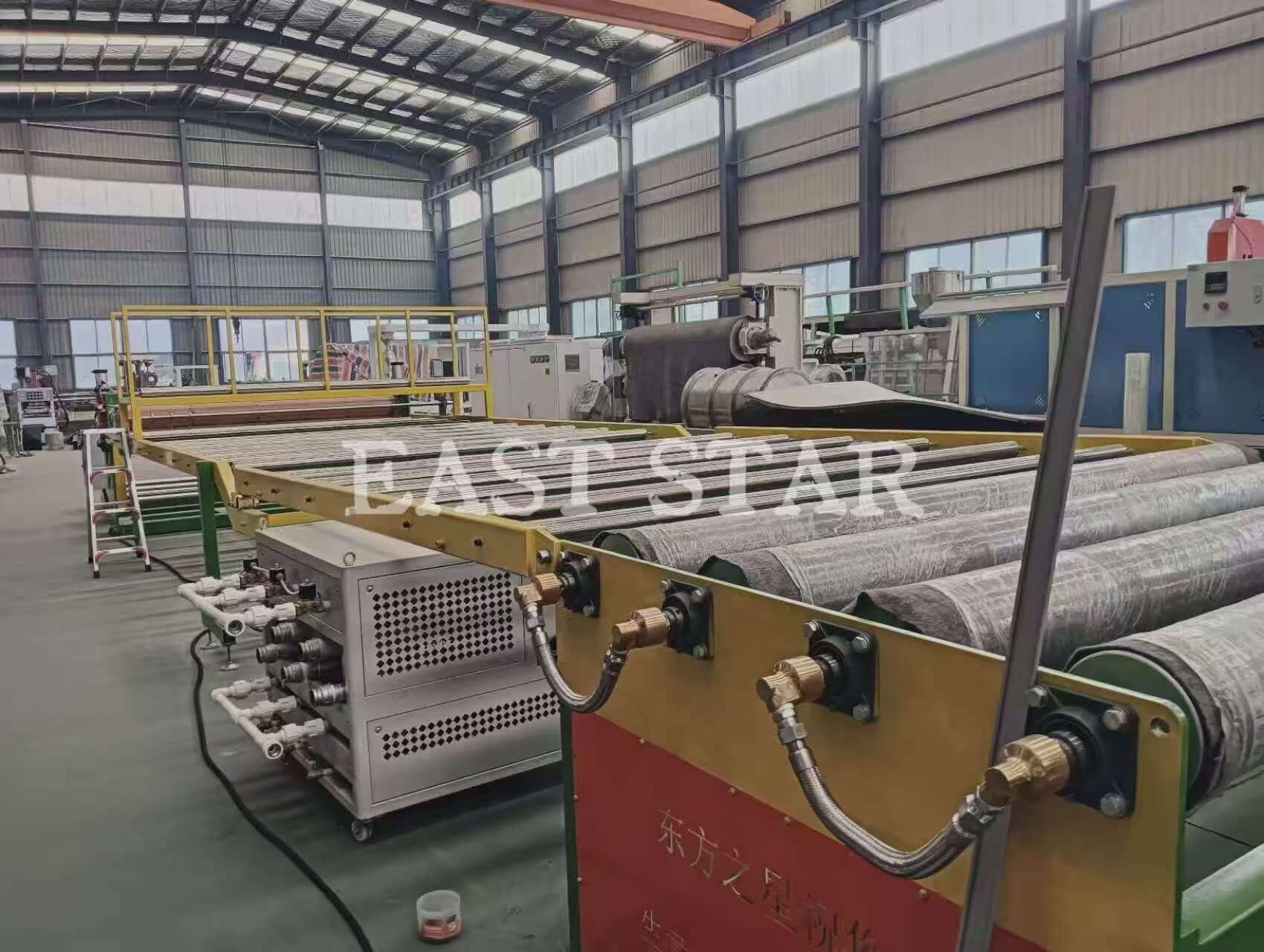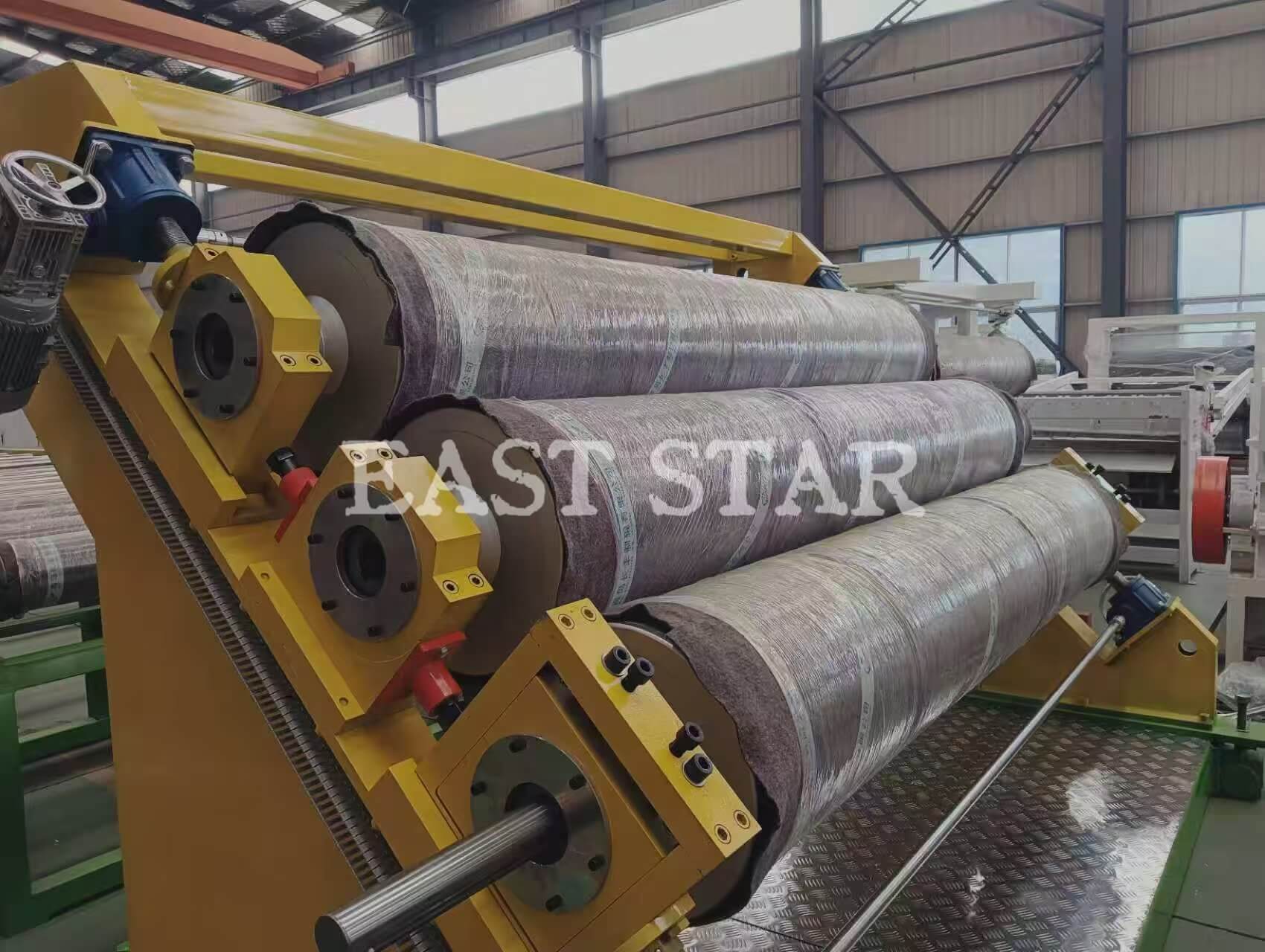 · Kalander s tremi valji: Hladi in polira staljeno ekstrudirano pločevino ter natančno nadzoruje debelino in končno obdelavo končnega izdelka.