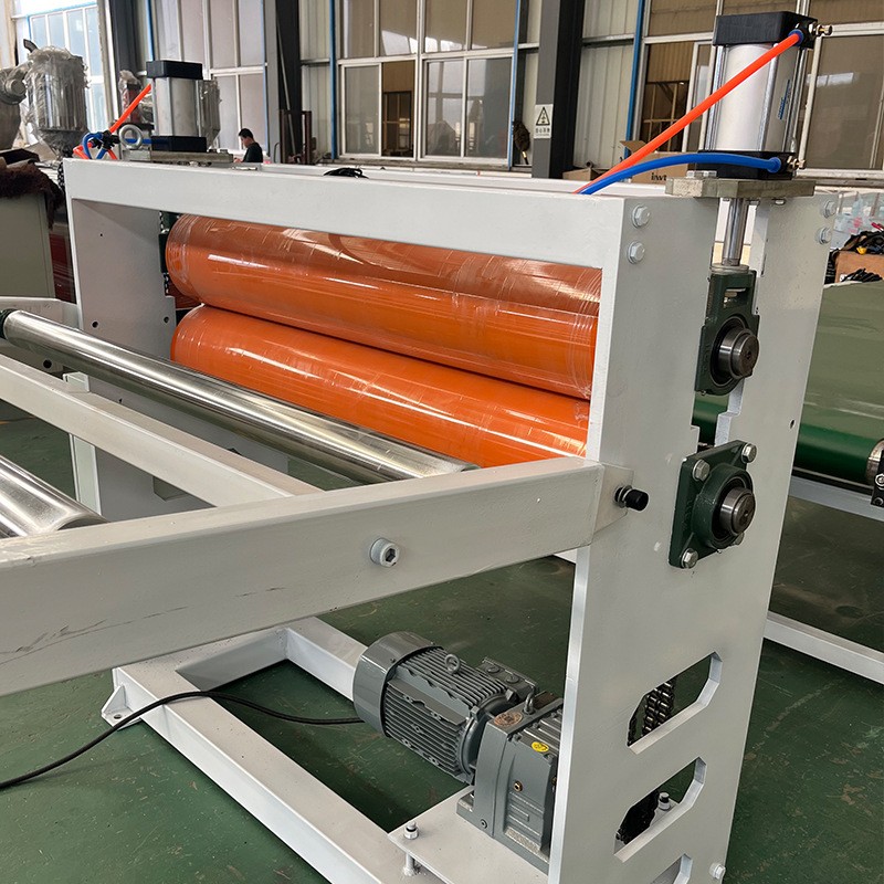 Oprema za ekstruder za plošče za razsvetljavo iz trdega pvc Oprema za ekstruder za plošče za razsvetljavo iz PVC: Oprema je v glavnem sestavljena iz ekstruderja z dvema polžema, ploščatega kalupa, trivaljnega koledarja, hladilnega nosilca, vlečnega stroja z gumijastimi valji, stroja za rezanje in transportne naprave.