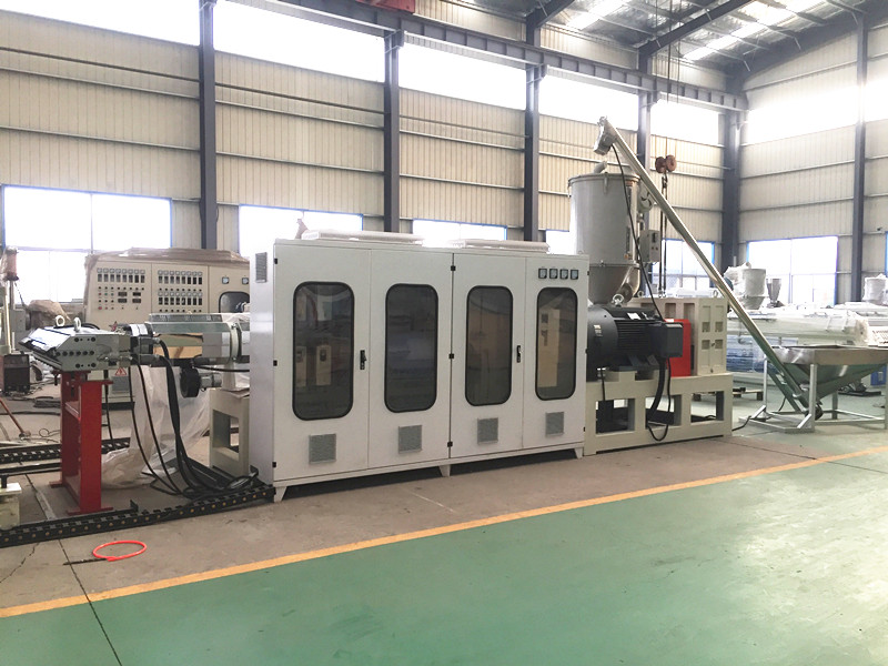 Enopolžni ekstruder SJ150×33, osnovna oprema tegaPE linija za proizvodnjo aluminijasto-plastičnih plošč, se ponaša s številnimi tehnološkimi prednostmi. Polž in cev ekstruderja sta izdelana iz materiala 38CrMoAlA in sta obdelana z nitriranjem, pri čemer je dosežena globina nitrifikacije 0,50–0,70 mm, kar zagotavlja odpornost proti obrabi in stabilnost pri dolgotrajnem delovanju z visoko hitrostjo. Ekstruder je opremljen s sedmimi grelnimi conami in močjo gretja 42 kW, s čimer doseže največjo zmogljivost ekstrudiranja 800 kg/uro, kar ustreza potrebam visoko učinkovite proizvodnje. Glavni motor uporablja AC motor Siemens 160 kW, povezan z reduktorjem s spiralnim zobnikom, ki omogoča brezstopenjsko regulacijo hitrosti od 0 do 70 vrt/min.
