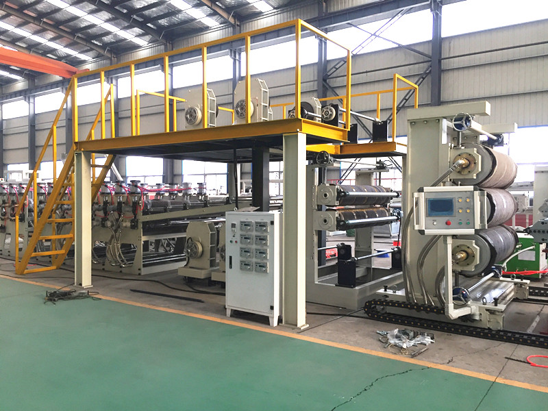 Qingdao EASTSTAR je dokončanPE linija za proizvodnjo aluminijasto-plastičnih ploščje sestavljen iz ekstruderja z enim polžem SJ150×33, kompozitne matrice, kalandra s tremi valji, dvostranskega odvijalnika aluminijaste tuljave, dvovaljnega termičnega laminatorja, osemvaljnega termičnega laminatorja, šestvaljnega stojala za hladilne vodilne valje, laminatorja, štirivaljnega izvlečnega stroja in rezalnika. PLC sistem omogoča inteligentno krmiljenje celotne linije.