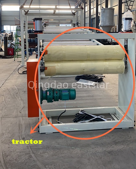 Celotnoproizvodna linija za večplastno koekstruzijovključuje tudi dva hidravlična menjalnika sita, 8-metrsko oporo za hlajenje in vlečni sistem rezanja. Menjalnik zaslona uporablja tajvanske hidravlične komponente, ki omogočajo menjavo zaslona brez zaustavitve stroja. Vlečni stroj je opremljen z valji iz nitrilne gume Φ240 × 2500 mm, ki jih poganja motor z močjo 2,2 kW, ki dosegajo sinhrono regulacijo hitrosti s tremi valji. Električni nadzorni sistem opreme za koekstruzijo pločevine ABS uporablja PLC serije Siemens S7 in zaslon na dotik v kombinaciji s frekvenčnim pretvornikom ABB, da se zagotovi usklajeno delovanje celotne linije.