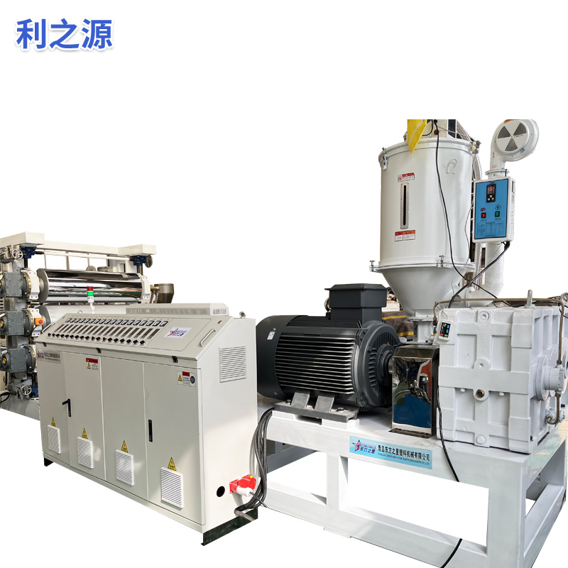 Oprema za ekstruder z mehko PVC protizdrsno ploščo: Oprema je v glavnem sestavljena iz ekstruderja z enim polžem, kalandra s tremi valji, 6-metrskega hlajenja nosilec, vlečni stroj z gumijastimi valji, strižni stroj in naprava za tekoči trak.