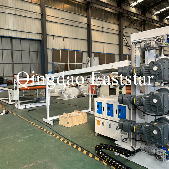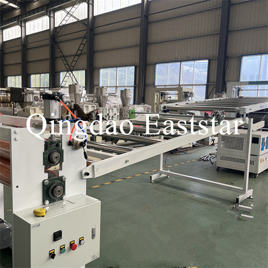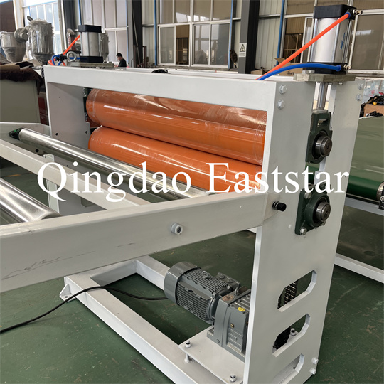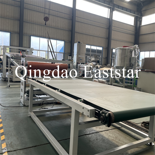 nosilec, vlečni stroj z gumijastimi valji, strižni stroj in naprava za tekoči trak. Oprema za ekstruder PVC protizdrsne plošče, širina izdelka