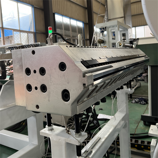 Oprema za PVC antistatične plošče: Oprema je v glavnem sestavljena iz ekstruderja s 120 enojnimi vijaki, koledarja s tremi valji, hladilnega nosilca, vlečnega stroja z gumijastimi valji, stroja za striženje in naprave s tekočim trakom. Standardna širina izdelka za zadnjo ploščo iz PVC želve je 1000 mm. Debelina je 6 mm. Oprema za PVC antistatične ekstruderske plošče lahko proizvaja različne teksture, kot so vzorec želve, vzorec pomarančne lupine in karirasti vzorec. Opremo za plošče za želve iz PVC je mogoče obdelati in prilagoditi glede na zahteve kupcev.