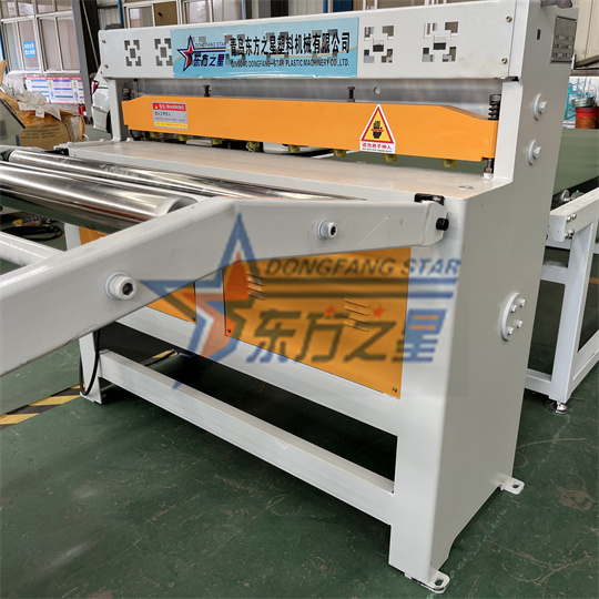 Oprema za ekstruder PVC antistatične pločevine: Oprema je v glavnem sestavljena iz ekstruderja z enim polžem 120, kalandra s tremi valji, hladilnega nosilca, vlečnega stroja z gumijastimi valji, strižnega stroja in