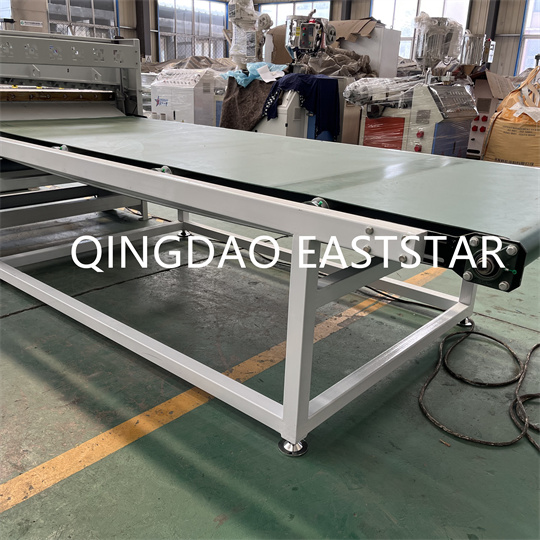 Oprema za ekstruder plošče za razsvetljavo iz PVC: Oprema je v glavnem sestavljena iz ekstruderja z dvema polžema, kalupa za plošče, kalandra s tremi valji, hladilnega nosilca,