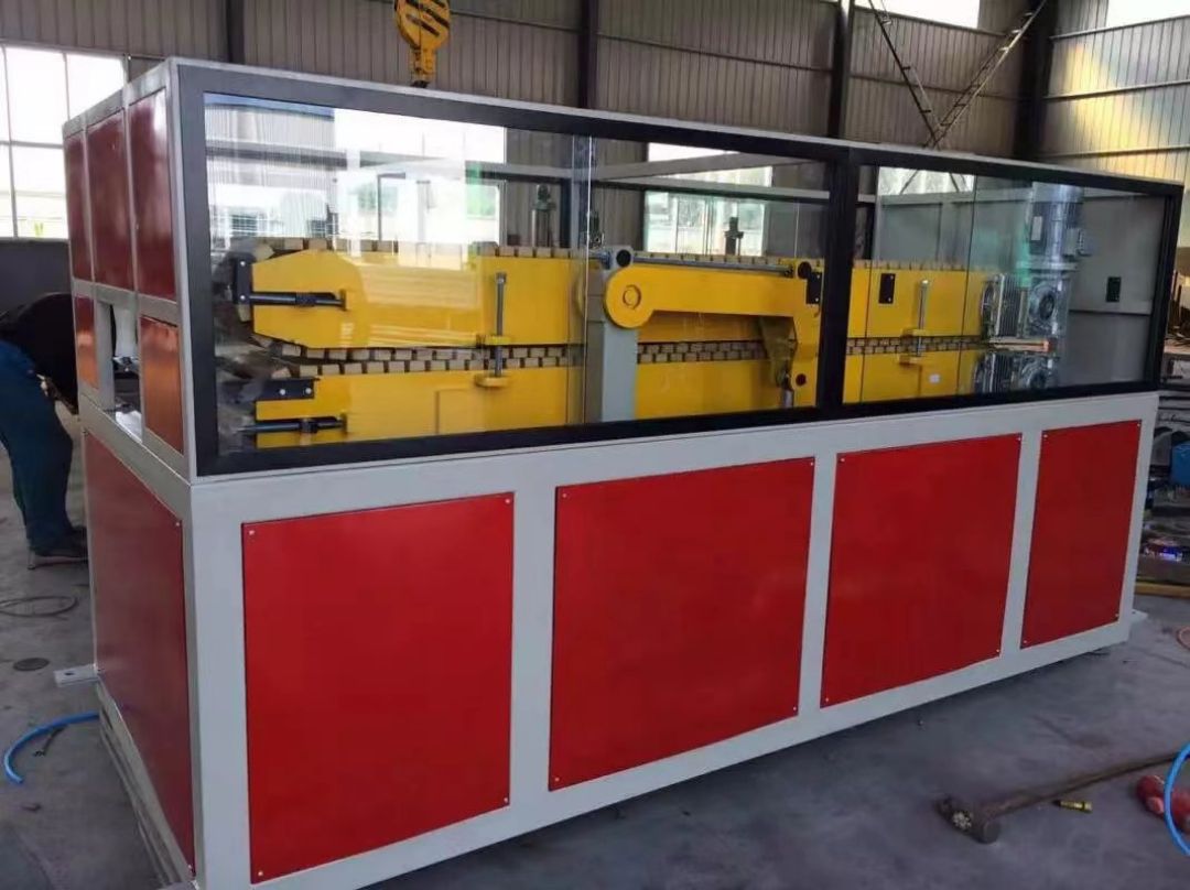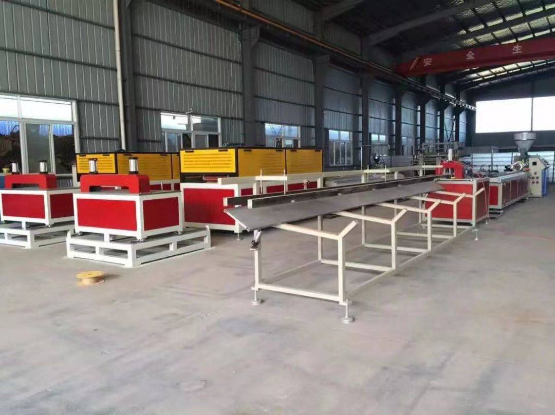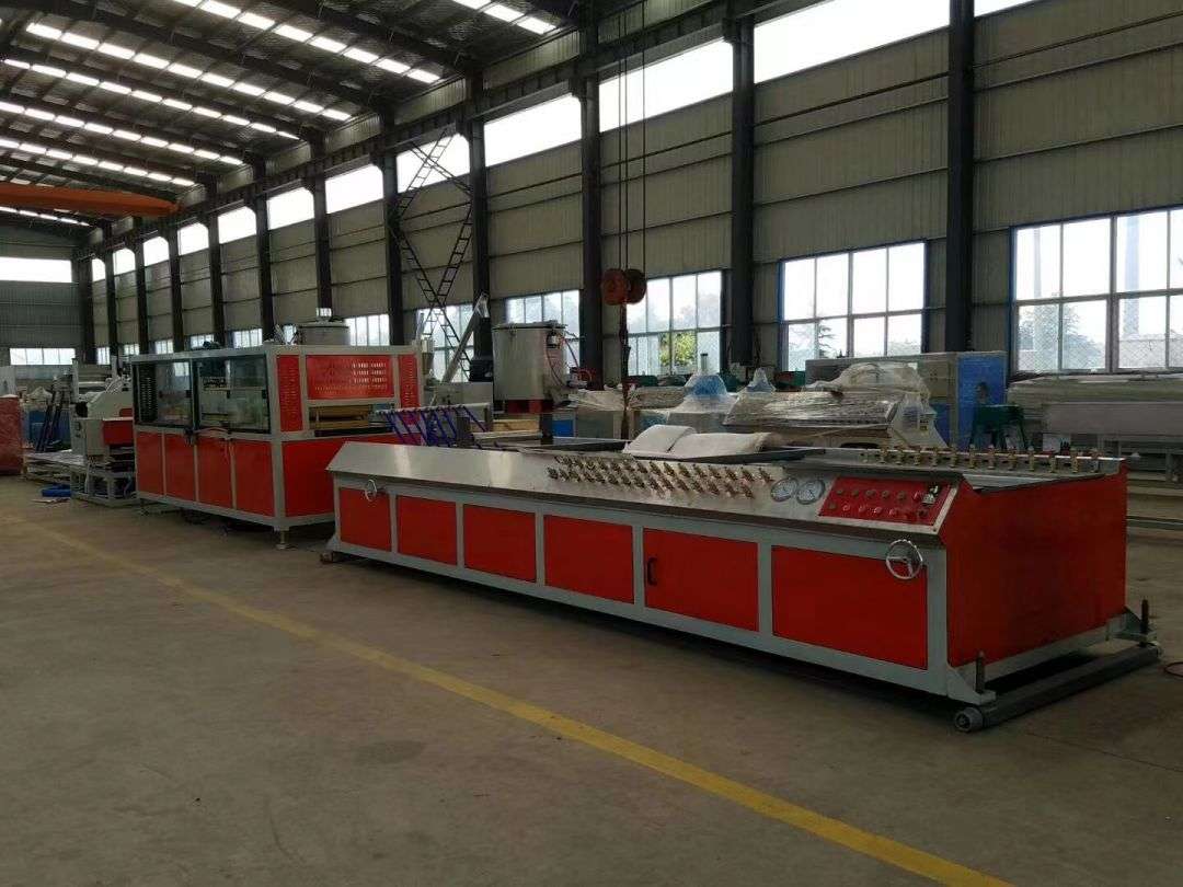 Linija za proizvodnjo PVC stenskih plošč je v glavnem sestavljena iz stožčastega dvovijačnega ekstruderja, vakuumske mize za oblikovanje, traktorja, rezalnega stroja in stojala za sprejem materiala.