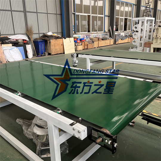 Stroj za ekstrudiranje mehkih pvc plošč Turtle Pattern Machine se imenuje tudi oprema za plošče za živino iz PVC. Uporablja se predvsem za polaganje tal v hlevih za prašiče, govedo in ovce. Ima vlogo ohranjanja toplote in je koristen za živinorejo. Oprema PVC želvaste plošče je sestavljena iz: ekstruderja, ploščatega kalupa, trivaljnega koledarja, hladilnega nosilca, vlečnega stroja, rezalnega stroja, transportnega nosilca, urna proizvodnja 350-400 kg/h, specifikacije PVC želvaste plošče: širina 1000 mm, debelina 6 mm. Širina in debelina izdelka sta nastavljivi, opremo pa lahko naročimo po željah kupca. Oprema za deske za želve iz PVC-ja lahko z zamenjavo srednjega valja proizvede tudi izdelke iz pomarančne lupine in diamantnega vzorca.