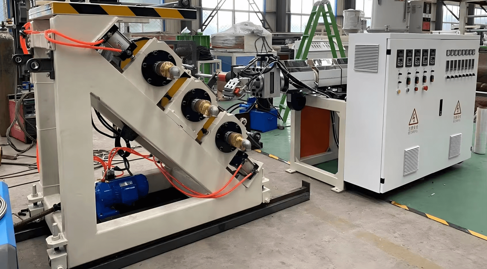 TPE+kompozitna netkana tkanina Co-extrusion-waterstop Production Line uporablja koekstruzijo za spajanje jedra TPE s plastjo netkanega blaga, kar ustvarja prožne, trpežne vodne zapore za betonske spoje. Postopek zagotavlja visokokakovosten, dosleden rezultat, idealen za gradbene aplikacije, ki zahtevajo zanesljivo hidroizolacijo.