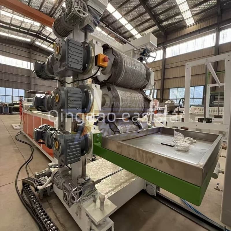 3-valjni koledar (∮320 mm × 500 mm) ima neodvisno krmiljene zrcalno obdelane valje (trdota RC60-65). Z ločenim nadzorom temperature in hitrosti zagotavlja natančno hlajenje in kalandriranje, kar ima za posledico plošče z izjemno ravnostjo, gladkostjo in enakomerno debelino.